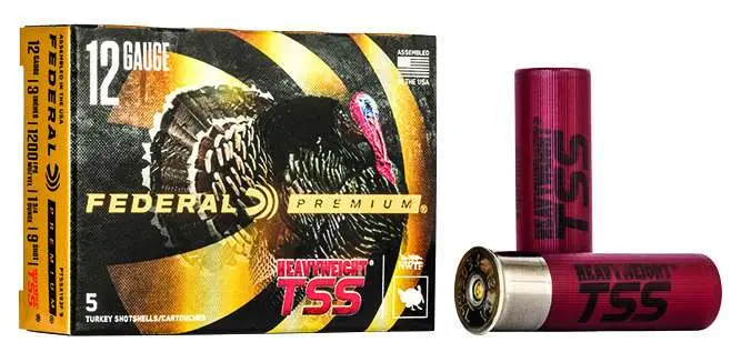 Kill gobblers at longer distances than ever before with HEAVYWEIGHT® TSS. Its payload of No. 7 or 9 HEAVYWEIGHT Tungsten Super Shot provides the highest pellet counts possible—up to double those of lead No. 5 loads of the same weight. The tungsten-alloy material’s 18 gm/cc density is 22 percent higher than standard tungsten and 56 percent more than lead. The result is the most energy and highest velocities at extreme range. Its rear-braking FLITECONTROL FLEX™ wad performs flawlessly through ported and standard turkey chokes for the most consistent deadly patterns possible.